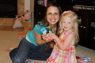 The girls and I spent last week in Houston with my family. My sister Holly is 8 months pregnant, and we went down for her baby shower. The girls always love playing with their cousin Payton and with Pops and Nana. There are a bajillion pictures, so I'm going to approach it like Holly did with several posts. Today's first post will be about the many gifts from Taiwan. DeeDee sent a package with lots of goodies for everyone. It was like Christmas! Purses and scarves for the Mommies, ties, keychains. and face masks for the Daddies, candies, light-up music playing toys, puzzles, doll dresses, shoes, Princess sticker books for the kiddos, and Taiwanese money and name banners for all. If you can't tell from the pictures, the girls loved the toys!